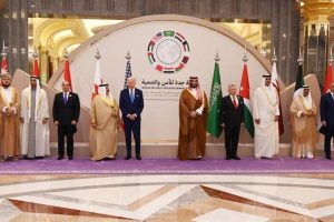 -في الملكة العربية السعودية كان لقاءه ولي العهد السعودي محمد بن سلمان في قصر السلام نوع من تقارب تنسيقي في هدفه ترميم العلاقات الثنائية وازالة الجفاء على مسلك ديبلوماسية “غسل القلوب” تطوي الندم.. وفي كلمته امام المشاركين في القمة الاقليمية التي ضمت المملكة السعودية ومجلس التعاون الخليجي بالاضافة الى مصر والعراق والاردن كرر الرؤية الاستراتيجية لواشنطن على الصعيد الاقليمي..