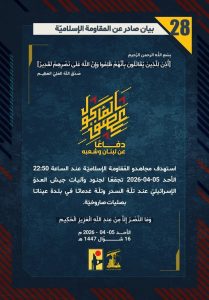 تواصل المقاومة الاسلامية اليوم مواجهاتها الاسطورية، وتخوض المعارك البطولية في مقابل الآلة الحربية الاسرائيلية على أرض جنوب لبنان، كما تحافظ على وتيرة قصف القواعد العسكرية والمقار الهامة للجيش الاسرائيلي واستخباراته داخل الكيان المحتل كرد على القصف الصهيوني الهمجي على المنشآت والمدنيين في لبنان.