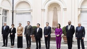 بالتزامن مع مواصلة دعم كييف، اعلن وزراء خارجية “مجموعة السبع” G7 إثر اجتماعهم الدوري في مدينة ميونيخ و بِحَثٍ من المستشار الالماني شولتز “وفق ما سرب من كواليس المؤتمر”، الابقاء وتعزيز العقوبات ، فضلا عن “دعوة دول اخرى إلى وقف تقديم المساعدة لروسيا”،