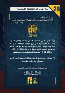 وجاءت بيانات المقاومة اليوم الاحد على النحو
