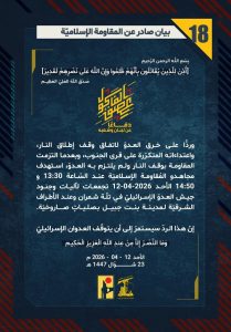 واصلت المقاومة الاسلامية اليوم مواجهاتها المباشرة لقوات الاحتلال الاسرائيلي، كما واصلت القصف الصاروخي والمسيَّر على القواعد العسكرية الاسرائيلية المنتشرة داخل الكيان المحتل، كردود على القصف الوحشي والغارات على المدنيين والمنشآت في لبنان.
