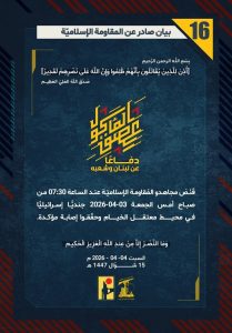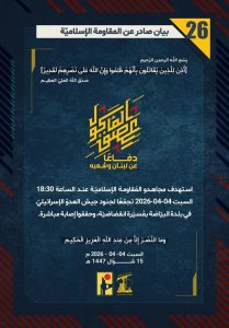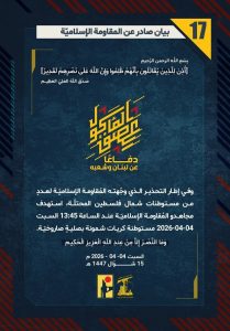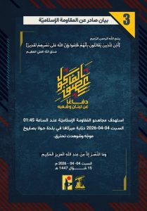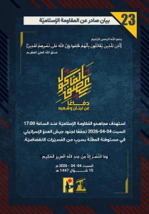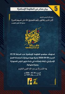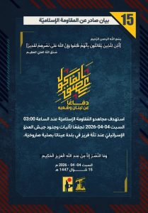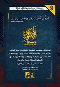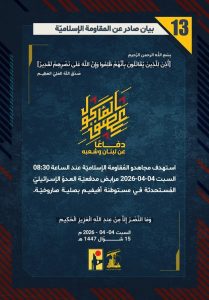 وجاءت عمليات المقاومة وفق بياناتها لليوم السبت على الشكل الاتي: