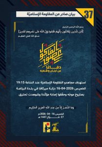 وجاءت بيانات المقاومة اليوم الخميس على النحو الاتي: