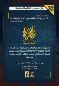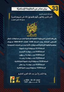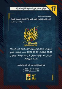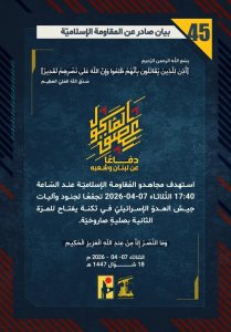 وجاءت عمليات المقاومة وفق بياناتها لليوم الاثنين على الشكل الاتي: