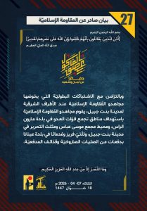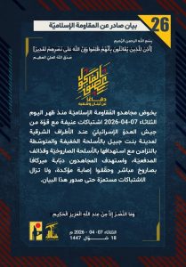 المقاومة تواصل التصدي للإسرائيلي في الجنوب وتقصف قواعده العسكرية في الكيان