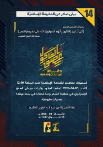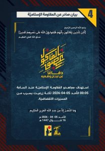 وجاءت عمليات المقاومة وفق بياناتها لليوم الاحد على الشكل الاتي: