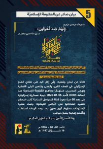 تواصل المقاومة الاسلامية اليوم مواجهاتها الاسطورية، وتخوض المعارك البطولية في مقابل الآلة الحربية الاسرائيلية على أرض جنوب لبنان، كما تحافظ على وتيرة قصف القواعد العسكرية والمقار الهامة للجيش الاسرائيلي واستخباراته داخل الكيان المحتل كرد على القصف الصهيوني الهمجي على المنشآت والمدنيين في لبنان.