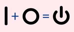 في وقت مبكر من اربعينيات القرن الماضي، استخدم المهندسون نظام عد ثنائي، لتمثيل مفاتيح محددة، حيث 1 يعني تشغيل و0 يعني إطفاء. في العقود التالية، تحولت إلى علامة تحتوي على دائرة (0) وخط رأسي (1).