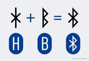 تم تصميم تقنية البلوتوث لتوحيد أجهزة متعددة في شبكة واحدة. الرمز الذي يمثل هذه التقنية هو مزيج من اثنين من الأحرف الرونية الاسكندنافية: Hagall أوH وهو الحرف الذي يساوي الحرف اللاتيني B. هذه اثنين من الأحرف الرونية من الحروف الأولى من اسم هارالد Blåtand.