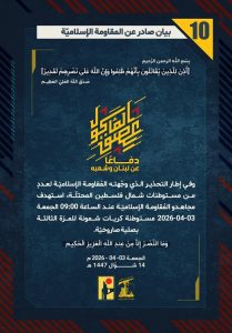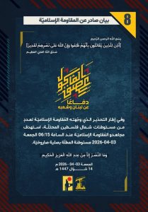 واصلت المقاومة الاسلامية اليوم تصديها الاسطوري للاعتداءات الاسرائيلية في جنوب لبنان، كما واصلت بالتوازي قصف القواعد العسكرية والمقار الهامة للجيش الاسرائيلي داخل الكيان المحتل. وجاءت عمليات المقاومة وفق بياناتها لليوم الجمعة على الشكل الاتي: