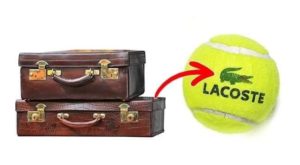 في عام 1923، كان رينيه لاكوست يسير في الشارع مع قبطان فريقه، آلان مور، ولاحظ حقيبة جلد تمساح في إحدى نوافذ المتاجر. راهن لاكوست ومور على أنه إذا فاز رينيه في المباراة التالية، فإن الآن سوف يشتري له تلك الحقيبة. خسر لاكوست، لكن أحد الصحفيين سمع بهذه القصة وكتب قطعة عن لاعب تنس لم يفز لكنه “حارب مثل التمساح”. هكذا كان لاكوست يحصل على لقبه، واستلمت شركته لاحقاً شعار هذا الزواحف.