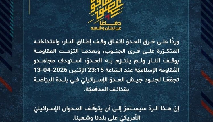 وختمت المقاومة بيانها بالتأكيد على “إنّ هذا الردّ سيستمرّ إلى أنّ يتوقّف العدوان الإسرائيليّ الأمريكيّ على بلدنا وشعبنا”.