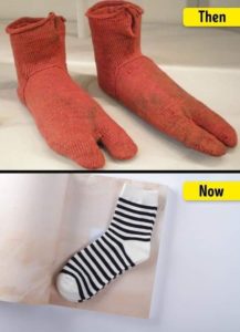 ظهرت الجوارب لأول مرة في مصر منذ القرن الثالث الميلادي. تفسر الفجوة الغريبة بين أصابع القدم حقيقة أن المصريين القدماء كانوا يرتدون جواربهم بالصنادل. اليوم من الصعب أن نتخيل حياتنا بدون هذه القطعة من الملابس. أو، في الواقع، تخيل أن يتم استخدامها مع الصنادل!