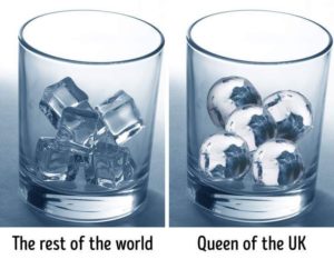 تكره الملكة صوت مكعبات الثلج داخل الكؤوس الزجاجية. ولكنها تجد في المقابل صوت كرات الثلج جميلاً، لذا تستخدم الكرات بدلاً من المكعبات في المشروبات.