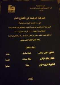 كذلك عرضت الطالبة صالح لأهمية العنوان الذي اختارته في بحثها العلمي بكافة أبعاده ووجوهه الايجابية ومردوداته على مستوى الدولة والادارة والاصلاح المنشود.
