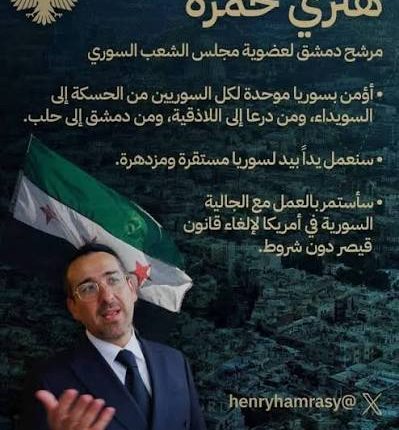 نشرت وكالة “فرانس برس” خبراً مفاده أنّ “المرشح السوري الأميركي هنري حمرة يخوض السباق الى مجلس الشعب، الذي تستعد السلطات السورية لتشكيله يوم الأحد المقبل، ليكون بذلك أول مرشح للطائفة اليهودية منذ قرابة سبعة عقود”.